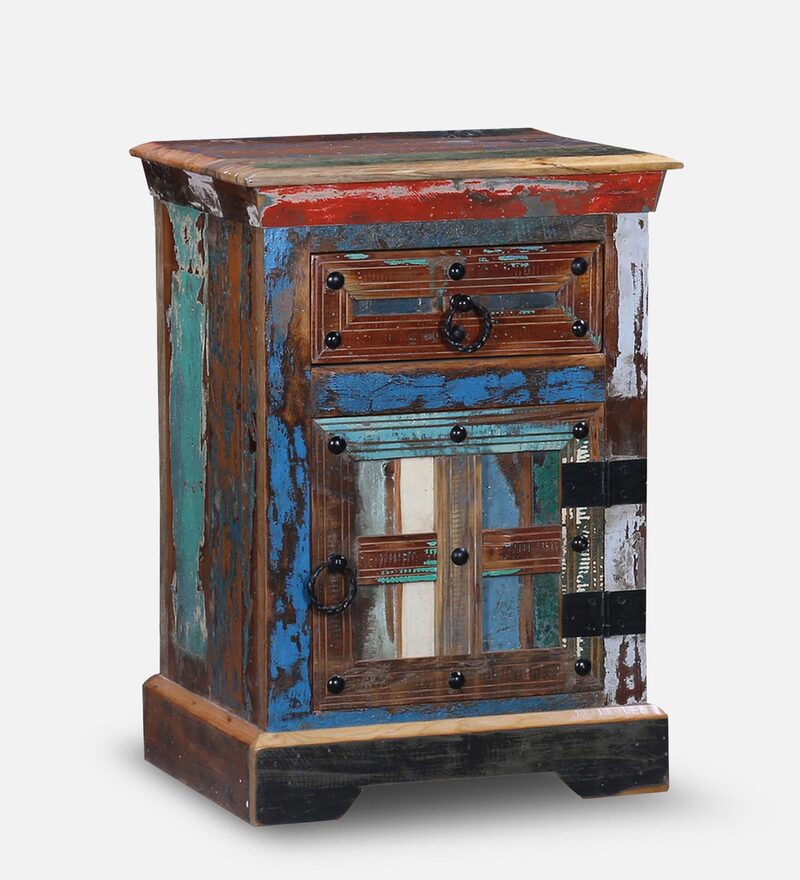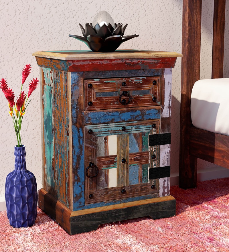 Adele Reclaimed Wood Bedside Cabinet In Distress Finish